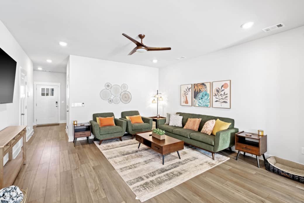 Enjoy a stylish experience at this centrally-located townhome in the heart of Greenville! We are conveniently located 10 min to downtown, 10 min to Travelers Rest and 5 min to Furman University. We have 3 bedrooms (1 King, 1 Queen, 2 Twins) along with a dedicated workstation with monitor and HDMI hookups. Out back you will find a fenced in yard for your puppies pleasure! Brand new construction community conveniently located between Downtown Greenville and Travelers Rest